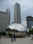 | The Bean. | During the first days of our trip we received an email from Jeff Gruen, Bob's friend in Corvallis, Oregon, who encouraged us to visit "The Bean" in downtown Chicago. After treating us to a great Italian lunch, Bob's younger brother, Jeff Adams, took us on a walking tour to The Bean. This famous sculpture actually has a much longer name, but most people call it the Bean. | |