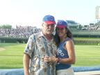 | Cub's Game. | On July 24 we left the lake house and drove to downtown Chicago, where we caught the El Train to Wrigley Field for the Cubs-Florida game. Jeff treated us to front row seats and we purchased "Chicago Dogs" for the game. Zambrano was the starting (and winning) pitcher, and Ramirez came out of his slump. Chicago won going away, the "Win" flag was raised above the scoreboard, and almost everyone stayed after the game to sing "Go Cubs, Go!" |