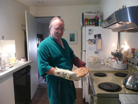 We left Demetra's Eugene, Oregon home on Tuesday, July 15 with the remains of a home-made blueberry-tapioca pie, headed for Bob's son Alistar' s and daughter-in law Natalie's house in Portland. There we had a nice conversation with the two (30-year-old+) kids, left the remaining pie and Bob's Mitsubishi with Alistar, and caught our plane to Illinois from the Portland Airport. At the beginning of the flight we could see a large wildfire on Mt. Adams, in Washington State. After that, it became dark fairly quickly. The person seated next to us was also a Chicago native and High School graduate (as is Demetra), and was traveling from her home in California with her two daughters to celebrate her parent's 50th wedding anniversary on July 19; the same day as the wedding we were attending for Demetra's niece, Katrina.