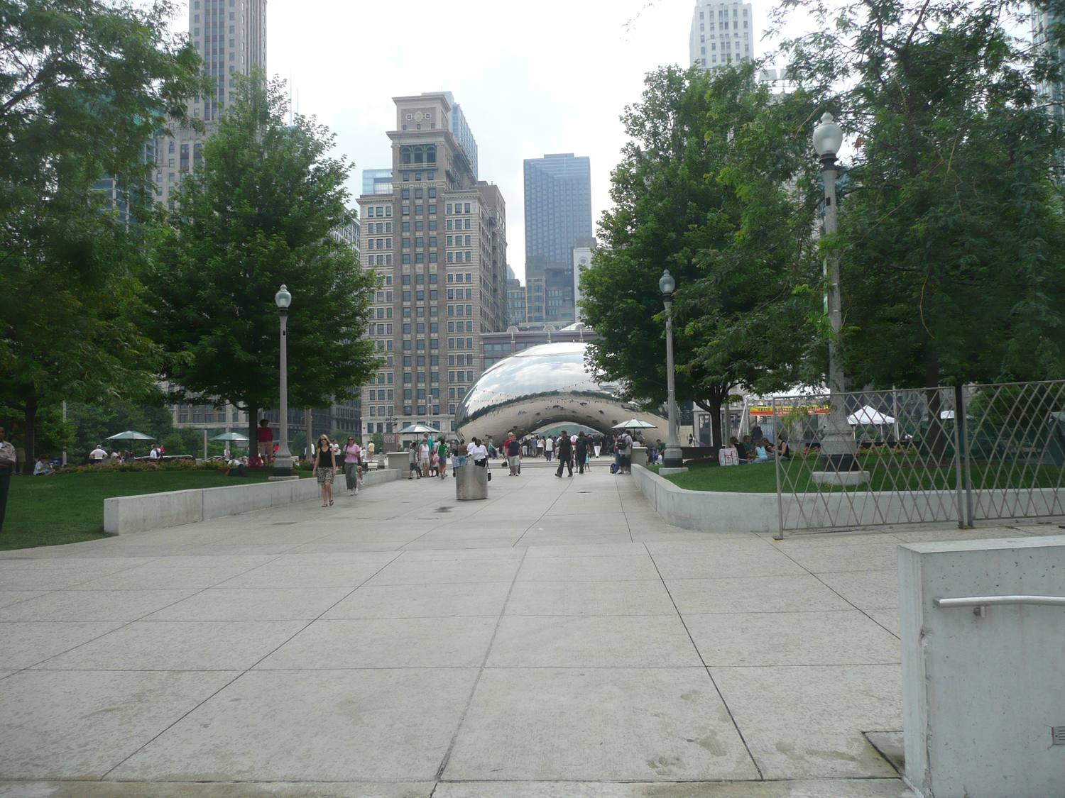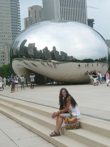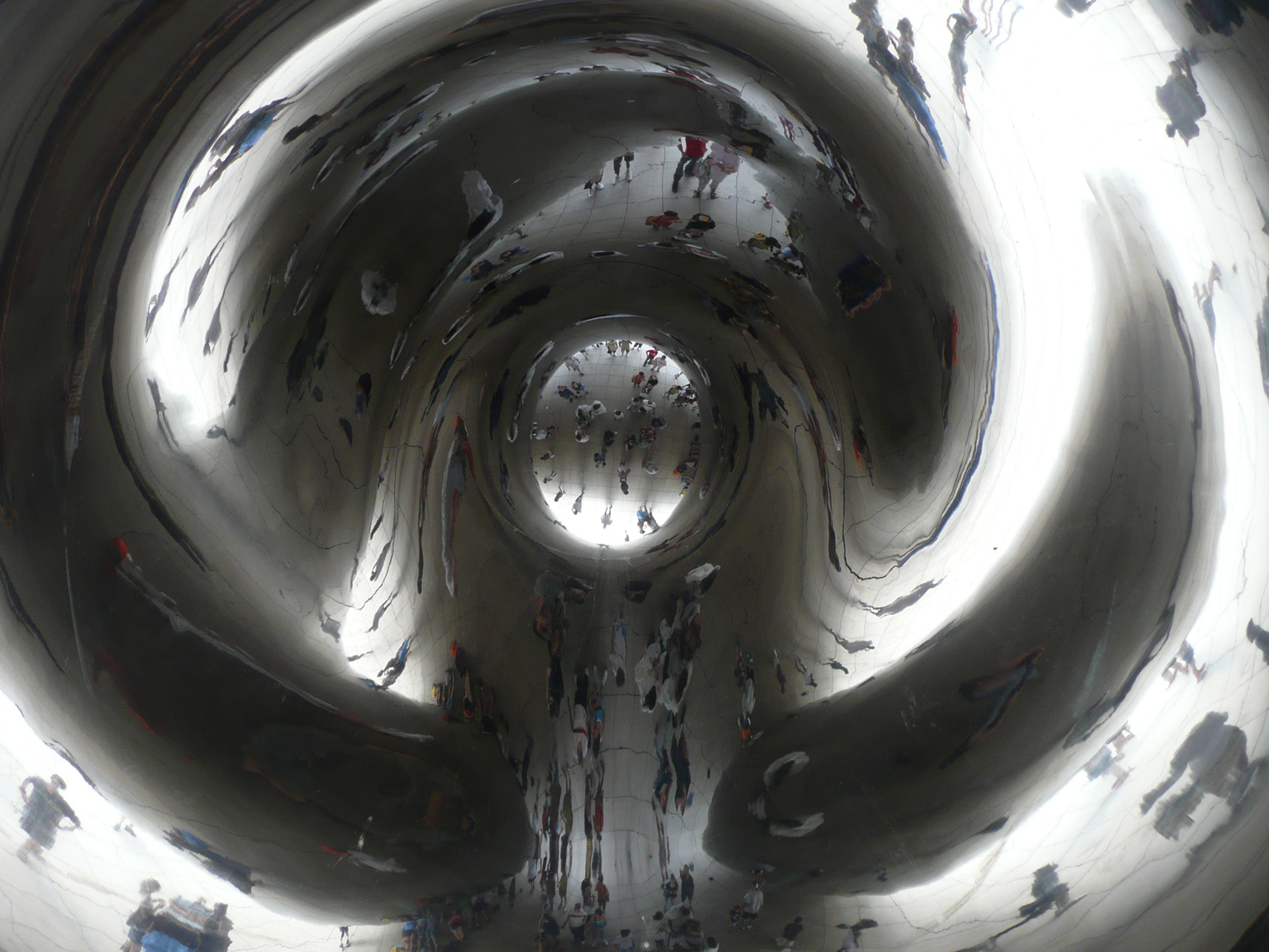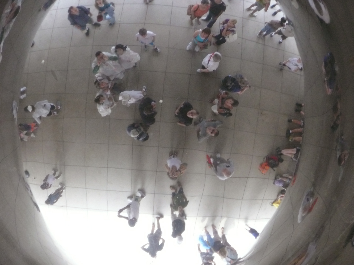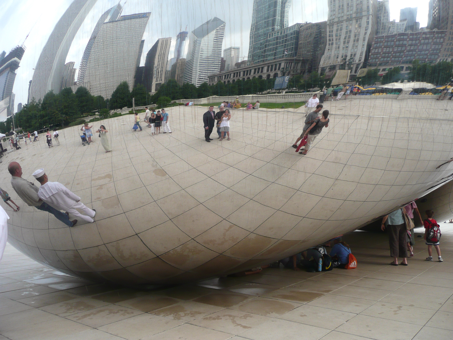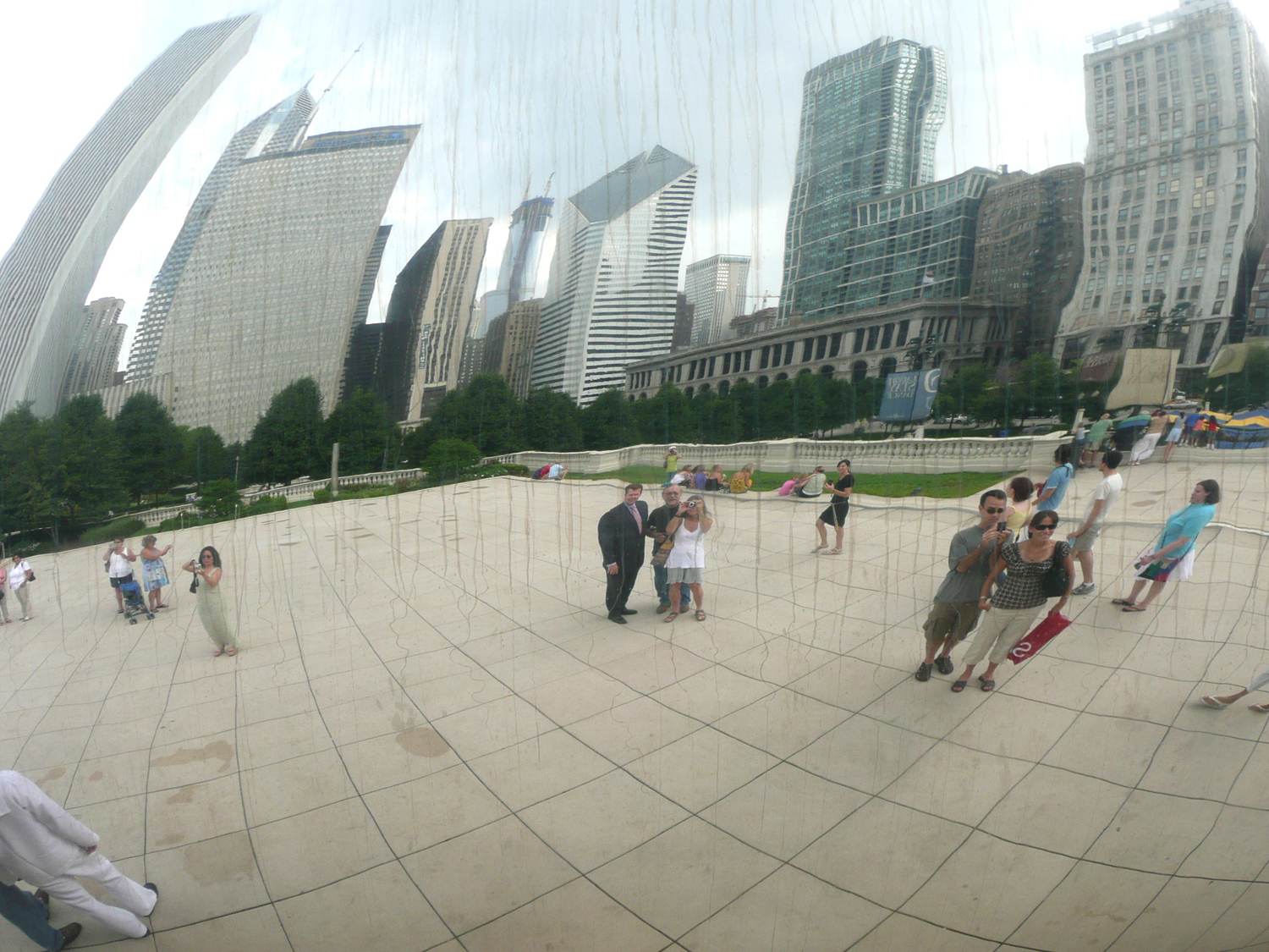 | Jeff and Bob on the way to the Bean. | The Bean. | Jeff, Bob, and Dee reflected in the Bean. | Sailor's reflection in the Bean. |