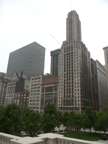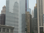 | Bob photo of the top of the Bean. | Demetra photo of the top of the Bean. Note Jeff, Bob, and photographer. | Bob's artsy photo of downtown Chicago from the Bean. | Historic building across from the Bean. |