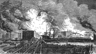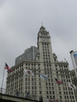 | Chicago, 1820. | Chicago, October 9, 1871. | Award-winning American Gothic architecture of the Chicago Tribune building. | The Wrigley building. | Another famous building. |
