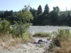 The trip began Tuesday evening in Albany, Oregon, planning, making a checklist, and packing. Wednesday morning we took off for Grants Pass, picking up a hitch-hiking Rainbow Family woman along the way. That evening we went to California, reaching Jedediah Smith State Park at dark, where we walked to the Smith River and shined the flashlight on 10-foot wide trees, and drove slowly around the campground (totally empty, two days before Labor Day Weekend), so we could look at giant trees in the headlights. Then we drove to a rock road location that Grandpa Bob and Uncle Alistar discovered several years ago and has been used by Zybach family members since for camping and swimming. Aaron found bear, deer, and cougar prints in the sand, examined a pile of huckleberry-stained bear poop, and stalked and caught two toads for brother C.J. by flashlight. The old campsite had washed away during a flood that left driftwood and brush high in the trees, so we had to level a sand wash-out in order to sleep someplace without rocks or brush. In the morning the light was prefect for taking pictures of the redwoods, and we talked to some retired hikers who had lived nearby for many years. They told us we were camping near the "Early Hole"; so-called because it was the first place salmon gather and are fished after leaving the ocean and beginning upstream to spawn. We also saw more, much fresher, bear poop and accidentally brought some in the car; it smelled really terrible and we had to stop and clean it out almost immediately. The weather in Crescent City was warm and clear and we could see a remarkable distance toward the horizon. Huckleberries are ripe, but all bushes we see have been stripped clean, probably mostly by bears.